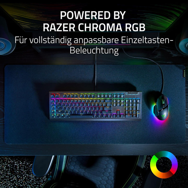 • Powered by Razer Chroma RGB Für vollständig anpassbare Einzeltasten-Beleuchtung: Dank Switches, deren Aufbau eine noch hellere, gleichmässige Beleuchtung ermöglichen, kannst du für jede einzelne Taste unter 16,8 Millionen Farben sowie zahlreichen