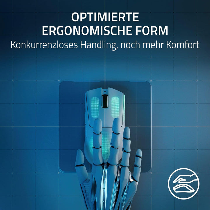 - Ultra leichtes 63 g / 64 g Design Kein Gramm zu viel: Über 25 % leichter als die Razer DeathAdder V2 Pro – erlebe Speed und Kontrolle wie bei den weltbesten E-Sport-Profis mit einer der leichtesten ergonomischen E-Sport-Mäuse, die jemals entwickelt