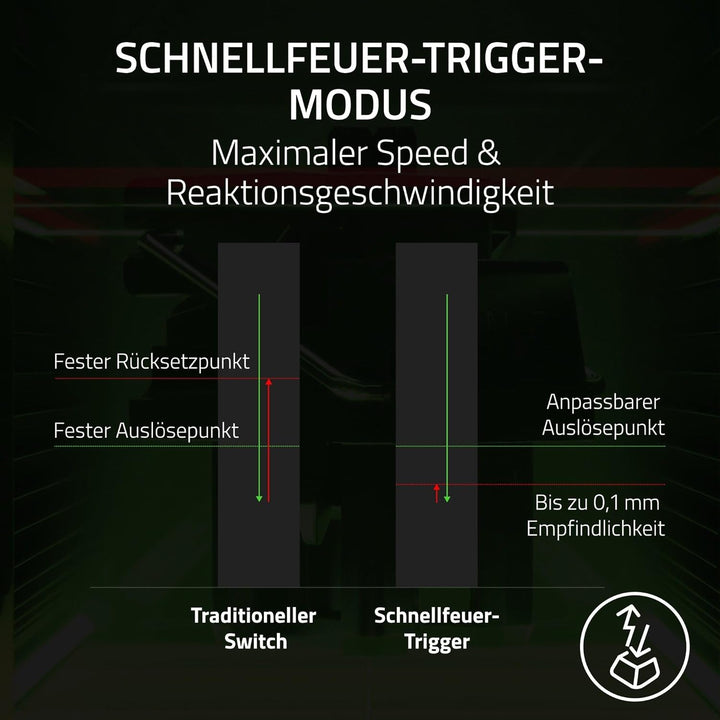 • SCHNELLFEUER-TRIGGER - Im Vergleich zu traditionellen mechanischen oder optischen Tastaturen gelingen dir noch schnellere und präzisere Eingaben. Du kannst die Tastenfunktion schon beim kleinsten Anheben des Fingers zurücksetzen lassen und einen