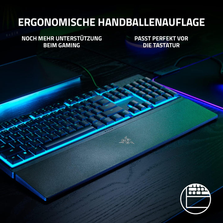 • Ergonomische Handballenauflage für noch mehr Komfort beim Gaming: Passt perfekt an die Tastatur und gibt den Handgelenken bequemen, sicheren Halt — unverzichtbar gerade bei längeren Sessions