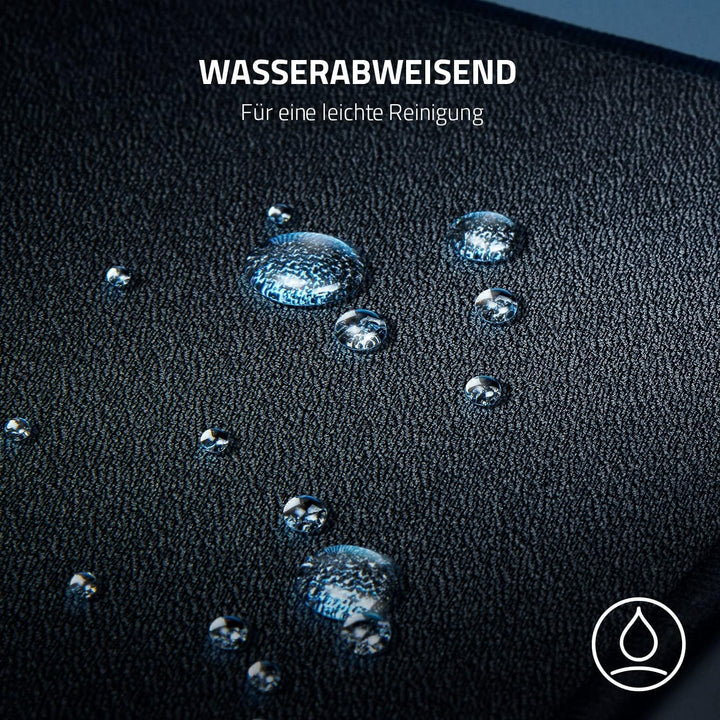 - Wasserabweisend: Die Oberfläche des Razer Strider ist mit verschütteten Flüssigkeiten nicht zu beeindrucken und lässt sich problemlos durch Abwischen reinigen.