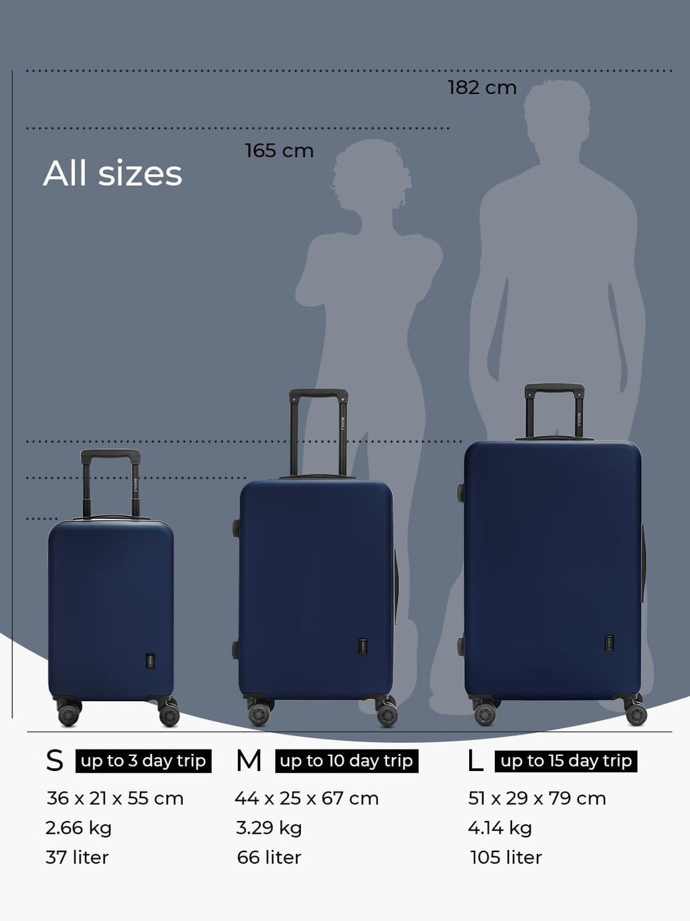 • GERÄUMIG: Das Kofferset enthält drei Hartschalen-Koffer in unterschiedlichen Grössen. Der grosse Koffer bietet mit seinen 51 cm x 29 cm x 79 cm (LxBxH), einem Gewicht von 4,14 kg und einem Volumen von 105 Liter viel Stauraum für ausgiebige Reisen.