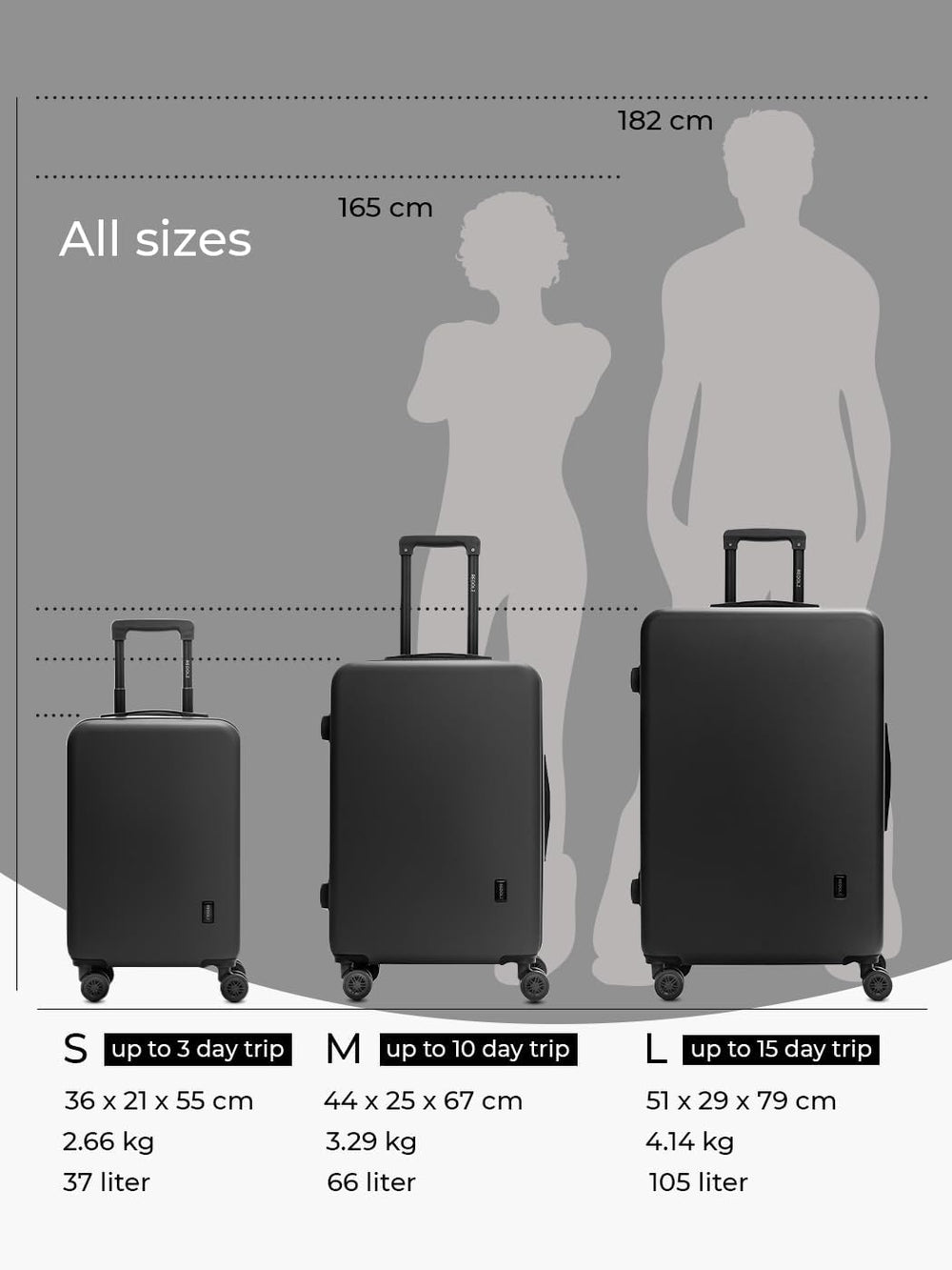 • GERÄUMIG: Das Kofferset enthält drei Hartschalen-Koffer in unterschiedlichen Grössen. Der grosse Koffer bietet mit seinen 51 cm x 29 cm x 79 cm (LxBxH), einem Gewicht von 4,14 kg und einem Volumen von 105 Liter viel Stauraum für ausgiebige Reisen.