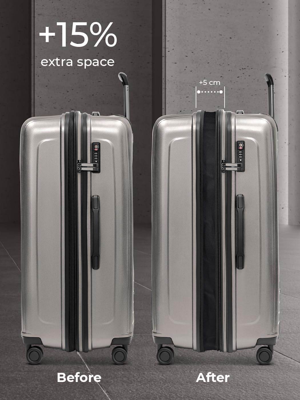 • TSA-SCHLOSS & DOPPELROLLEN: Das Zahlen-Schloss entspricht den TSA-Richtlinien und ermöglicht eine problemlose Inspektion ohne Beschädigung für Reisen in die USA und andere Länder mit TSA-Sicherheitsvorschriften. Ihren Zahlencode können Sie selbst