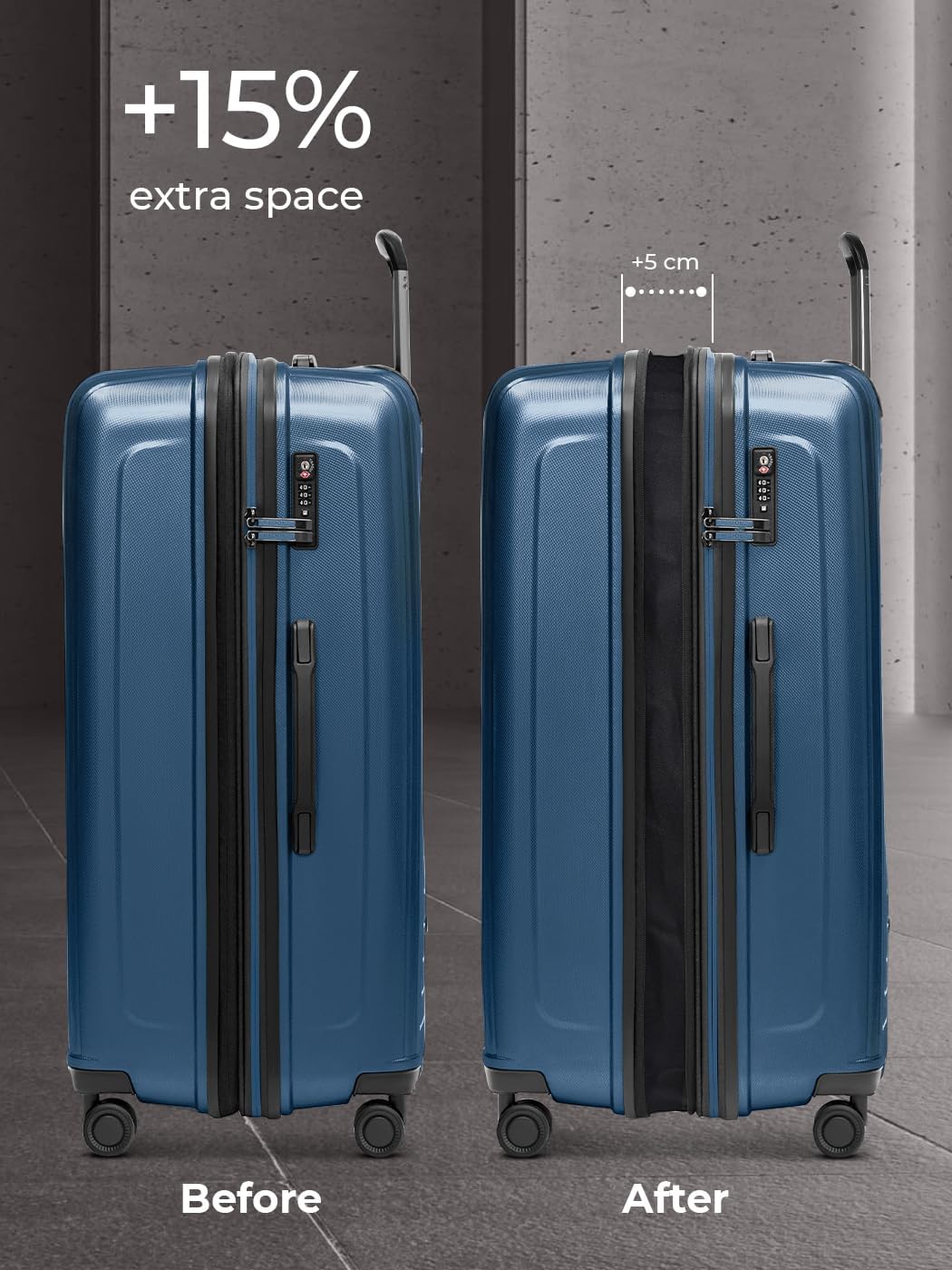 - TSA-SCHLOSS & DOPPELROLLEN: Das Zahlen-Schloss entspricht den TSA-Richtlinien und ermöglicht eine problemlose Inspektion ohne Beschädigung für Reisen in die USA und andere Länder mit TSA-Sicherheitsvorschriften. Ihren Zahlencode können Sie selbst