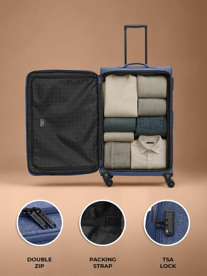 REDOLZ LARGE Weichschalen Koffer für Damen & Herren | leichter Trolley 77 cm mit 4 Doppelrollen & TS