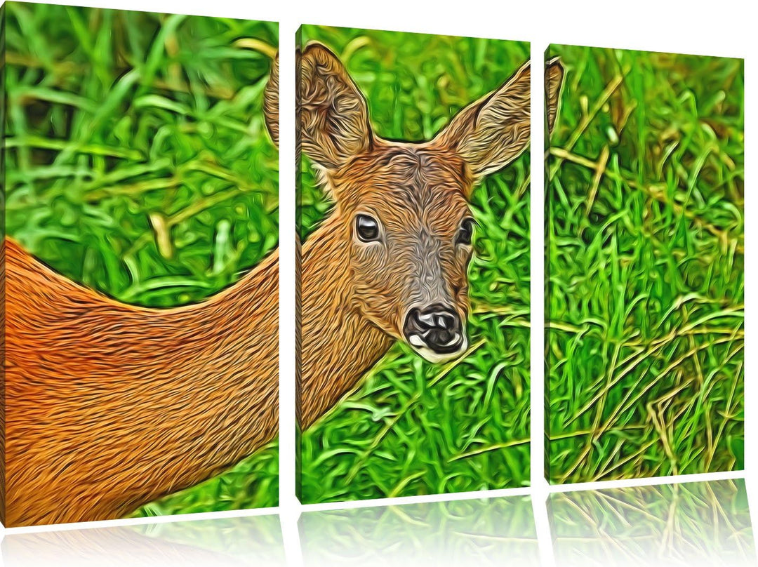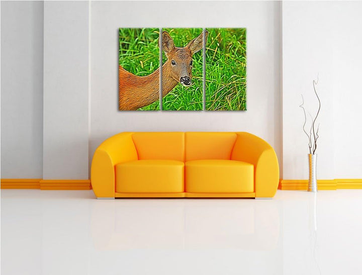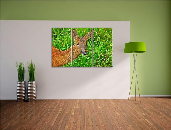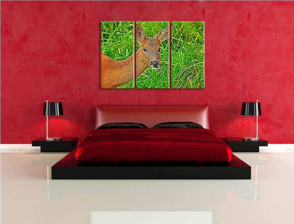 Reh beim Fressen 3 Teilig, Gesamtgrösse 120x80 cm auf Leinwand, XXL riesige Bilder fertig gerahmt mi