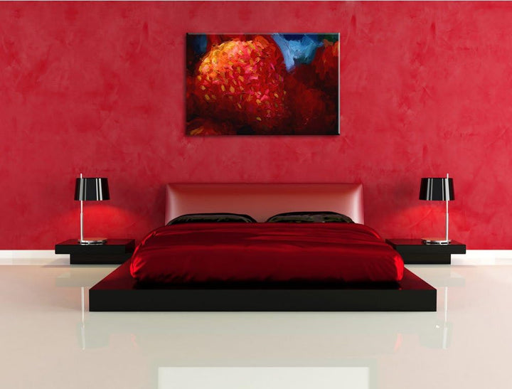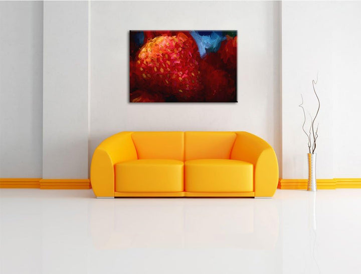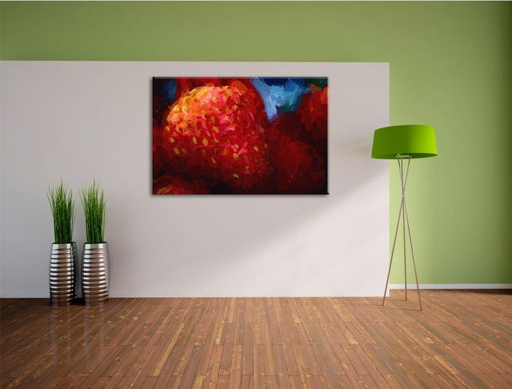 reife Erdbeeren Deluxe Format: 100x70 cm auf Leinwand, XXL riesige Bilder fertig gerahmt mit Keilrah