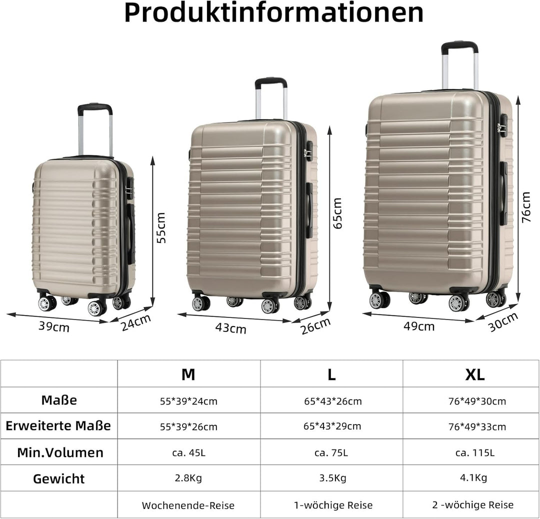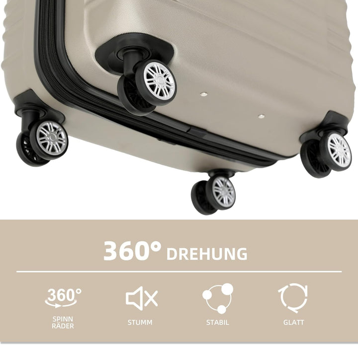 Reisekoffer 2088 Hartschalekoffer Gepäck Koffer Trolley Bordcase Handgepäck M in 14 Farben (Champagn