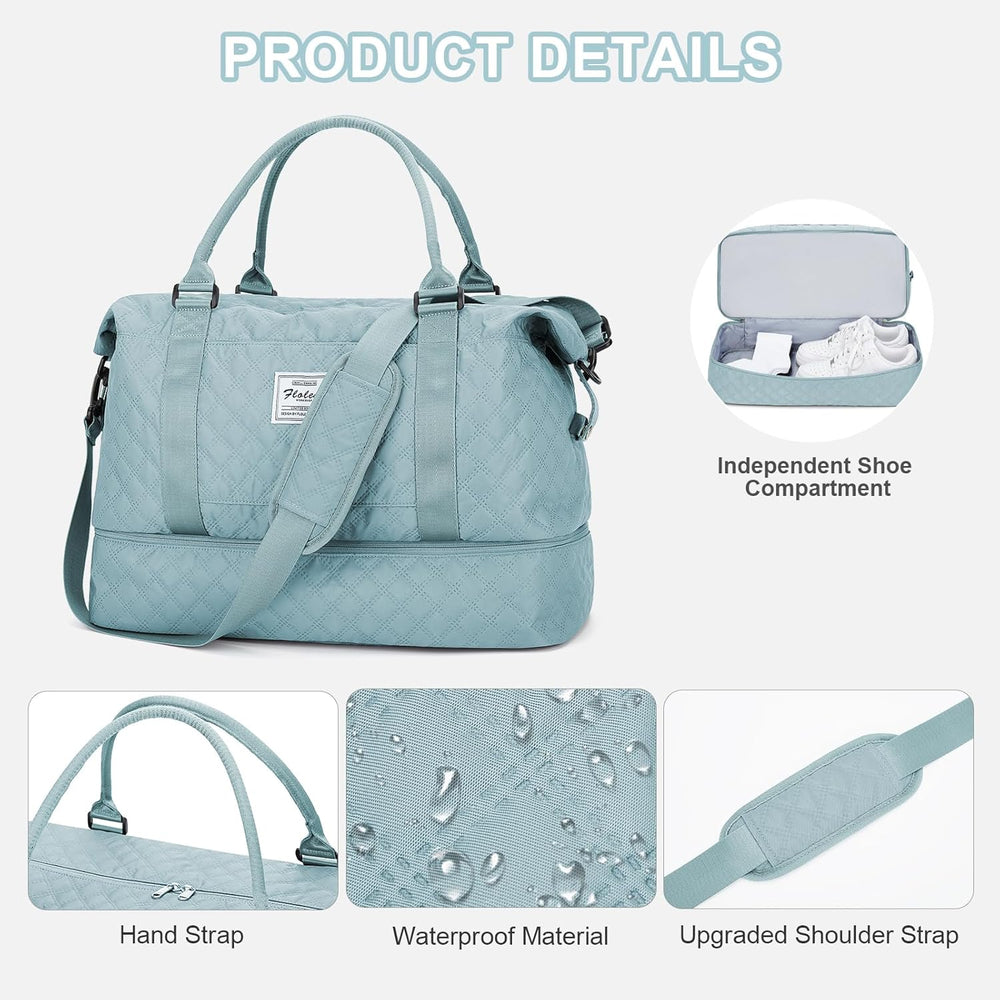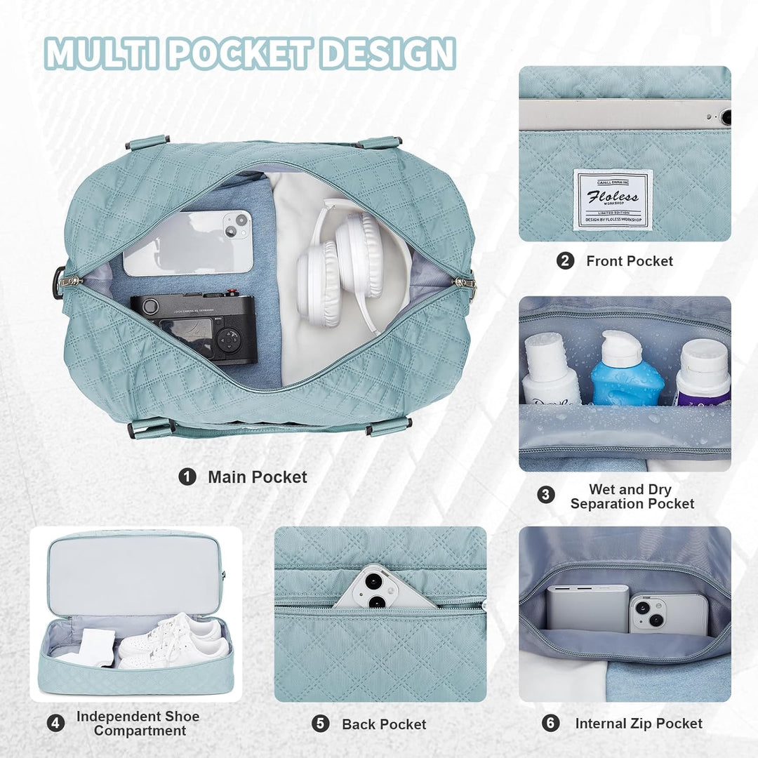 - 【Trockene, nasse, getrennte Reisetasche】 Die Damen-Reisetasche mit einer trockenen und nassen Tasche, die Ihnen helfen kann, trockene und nasse Gegenstände zu trennen. Wenn Sie nasse Kleidung oder ein Handtuch haben, können Sie es in die trockene
