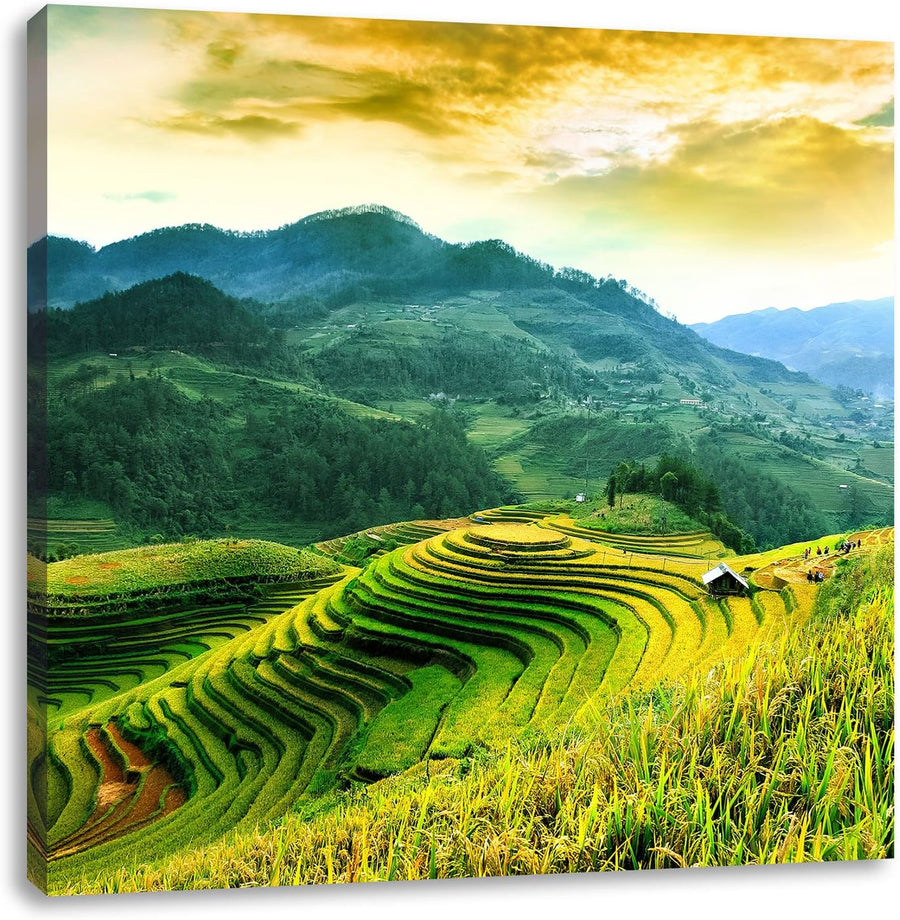 Reisfelder in Vietnam, Format: 70x70 auf Leinwand, XXL riesige Bilder fertig gerahmt mit Keilrahmen,