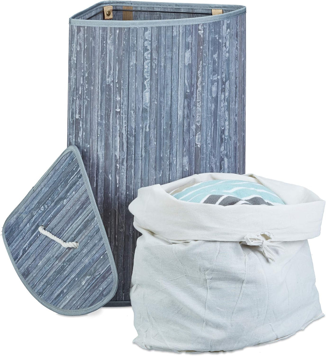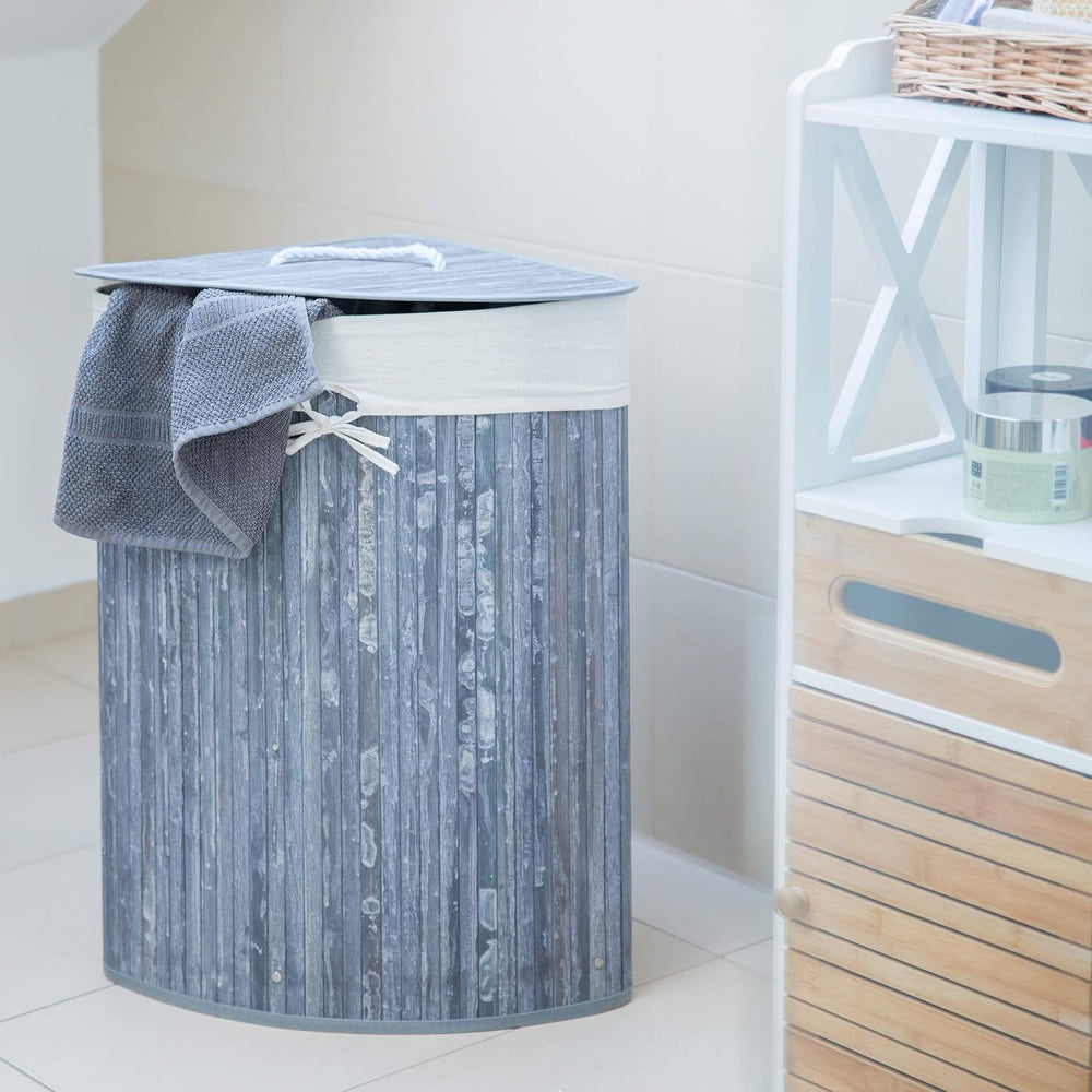 Variante: 1 Grau Eck-Wäschekorb Bambus abnehmbarer Deckel