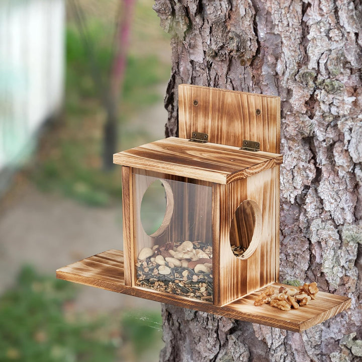 - Futterplatz: Eichhörnchenfutterstelle aus geflammtem Holz - Zur Unterstützung bei der Nahrungssuche
