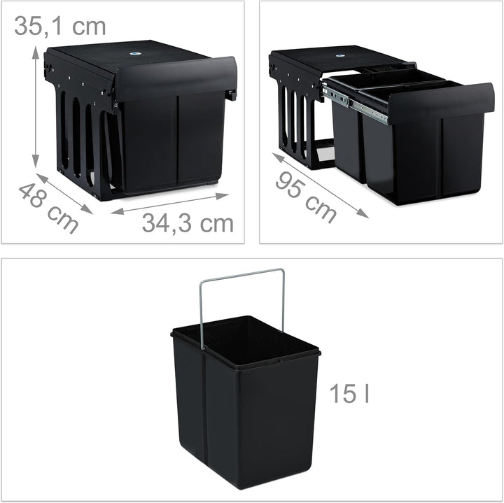 - Basics: Schwarzer Einbaumülleimer HxBxT: ca. 35,1 x 34,3 x 48 cm - Ca. 15 l Volumen je Abfalleimer