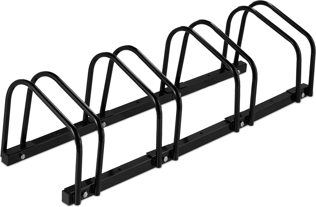 Relaxdays Fahrradständer Boden, 4, 60 mm Reifenbreite, Metall, Garage, Fahrrad-Aufstellständer, schw