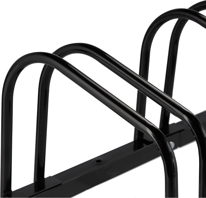 • Robust: Schwarzer Fahrradbodenständer aus pulverbeschichtetem Stahl - Inklusive Montagematerial