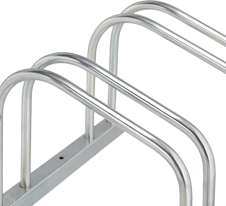 • Robust: Der silberne Fahrradbodenständer ist aus verzinktem Stahl gefertigt - Witterungsbeständig