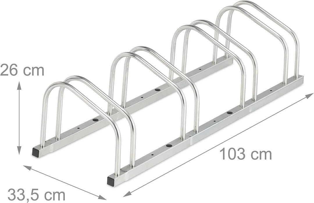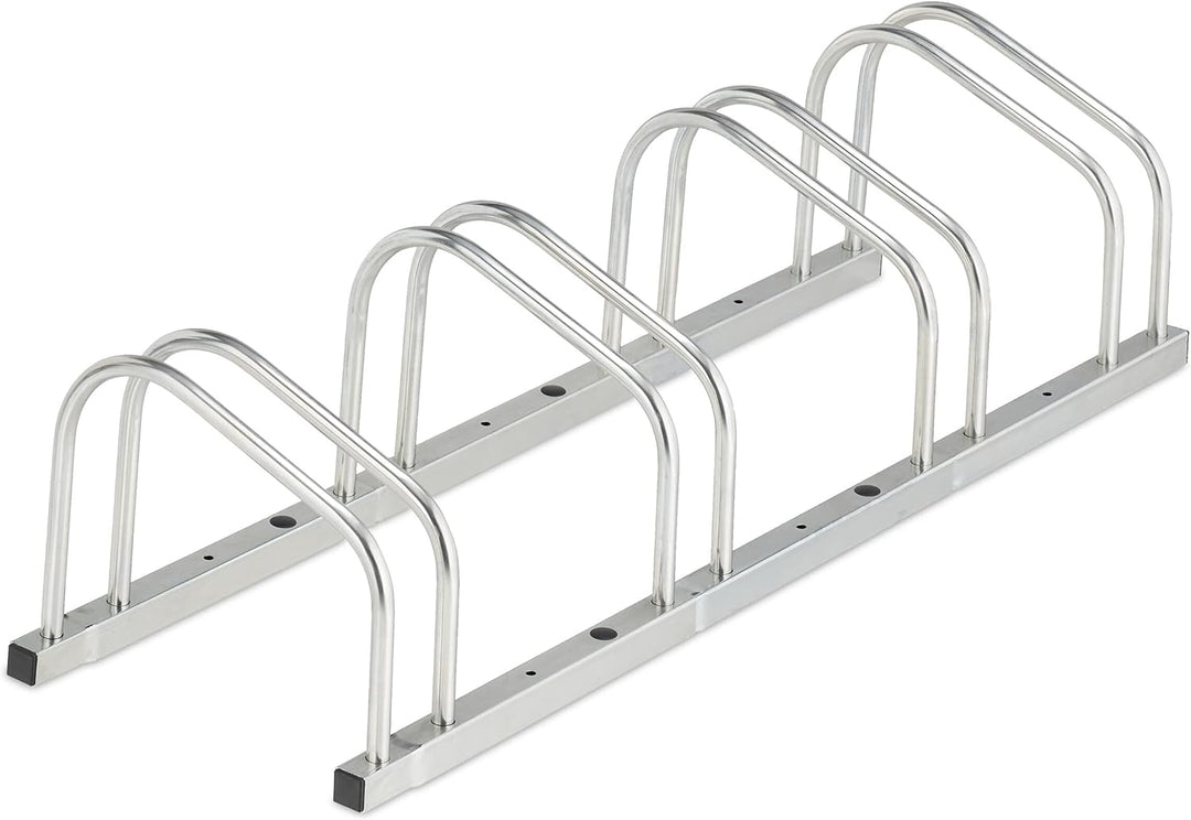 Relaxdays Fahrradständer Boden, für 4 Fahrräder, bis 50 mm Reifenbreite, Metall, Garage, Fahrrad-Auf