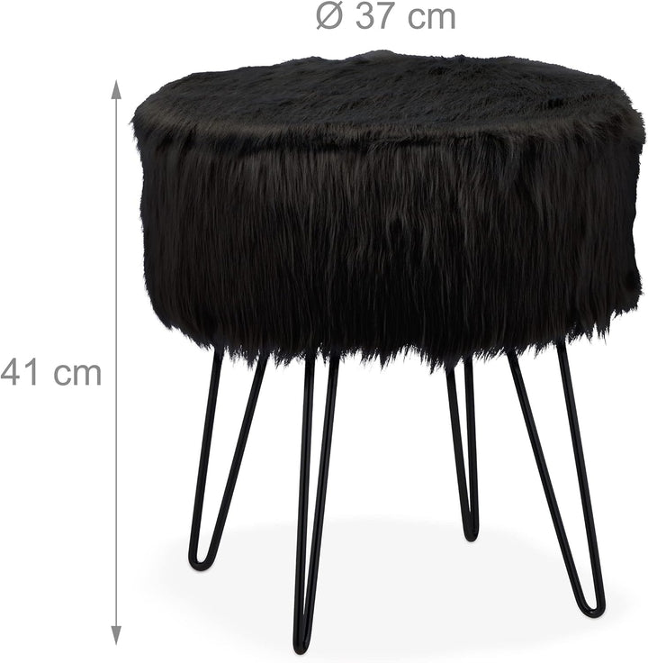 • Basics: Schwarzer Sitzhocker mit Kunstfellbezug und Hairpin Legs - Gesamtmasse H x D: ca. 41 x 37 cm
