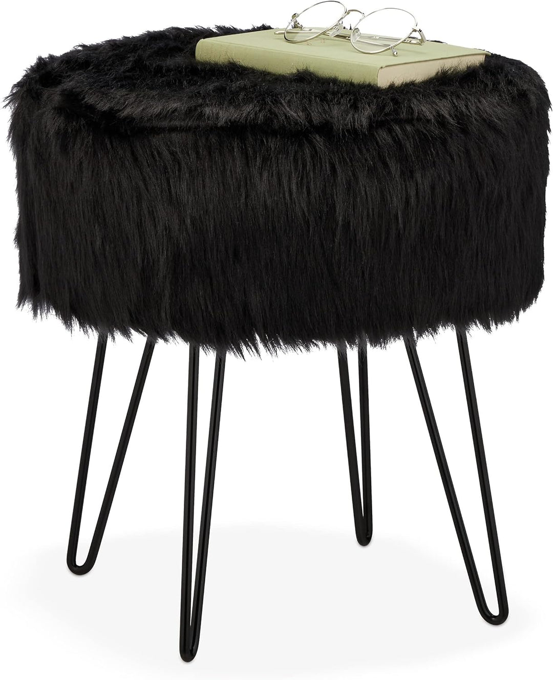 Relaxdays Fellhocker, gepolsterter Plüschhocker, rund, Metallgestell, Schminktischhocker, H x D: 41