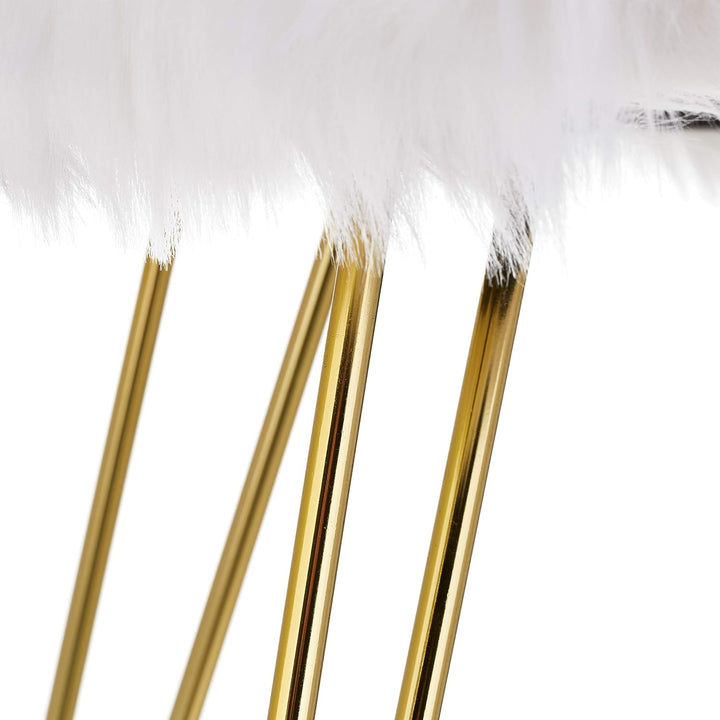- Elegant: Weisses, leicht glänzendes Kunstfell mit goldenen Hairpin Legs - Glamouröser Sitzhocker