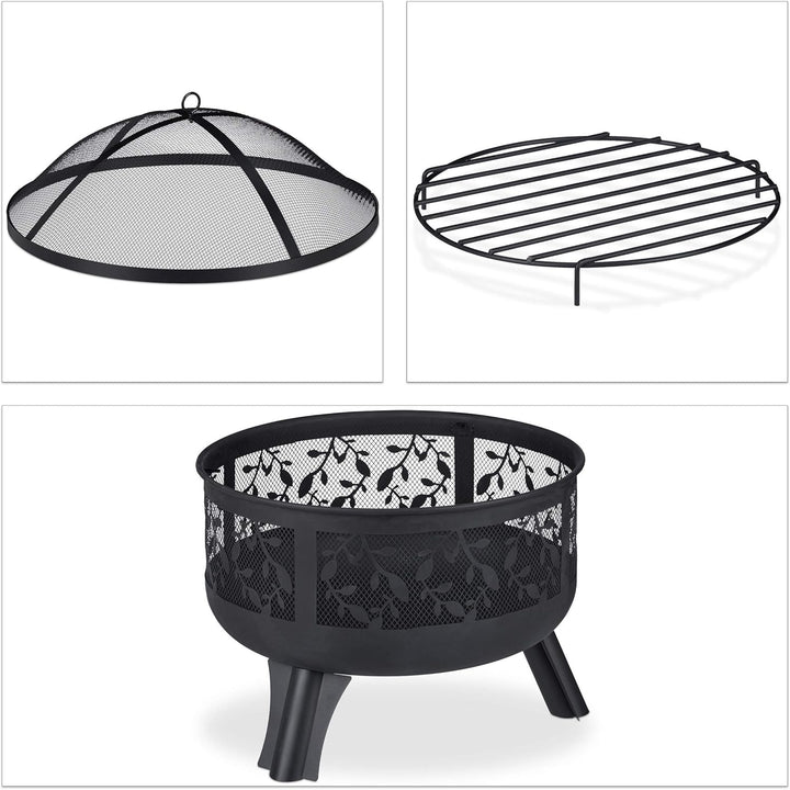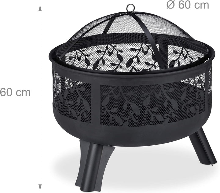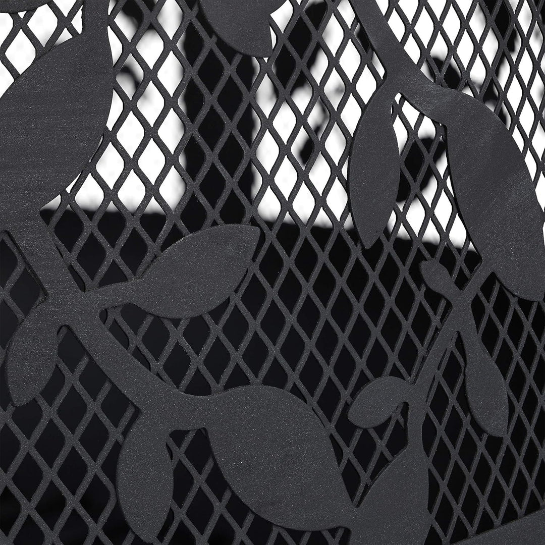 - Design: Feuerkorb aus matt-schwarzem Metall - Gitter ringsherum mit hübschem Blatt-Muster verziert