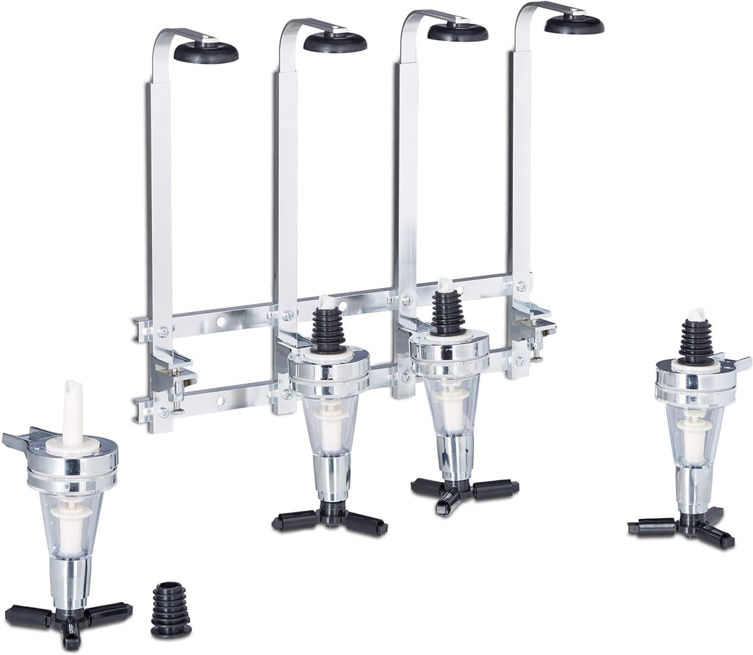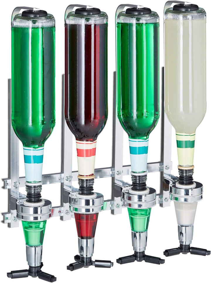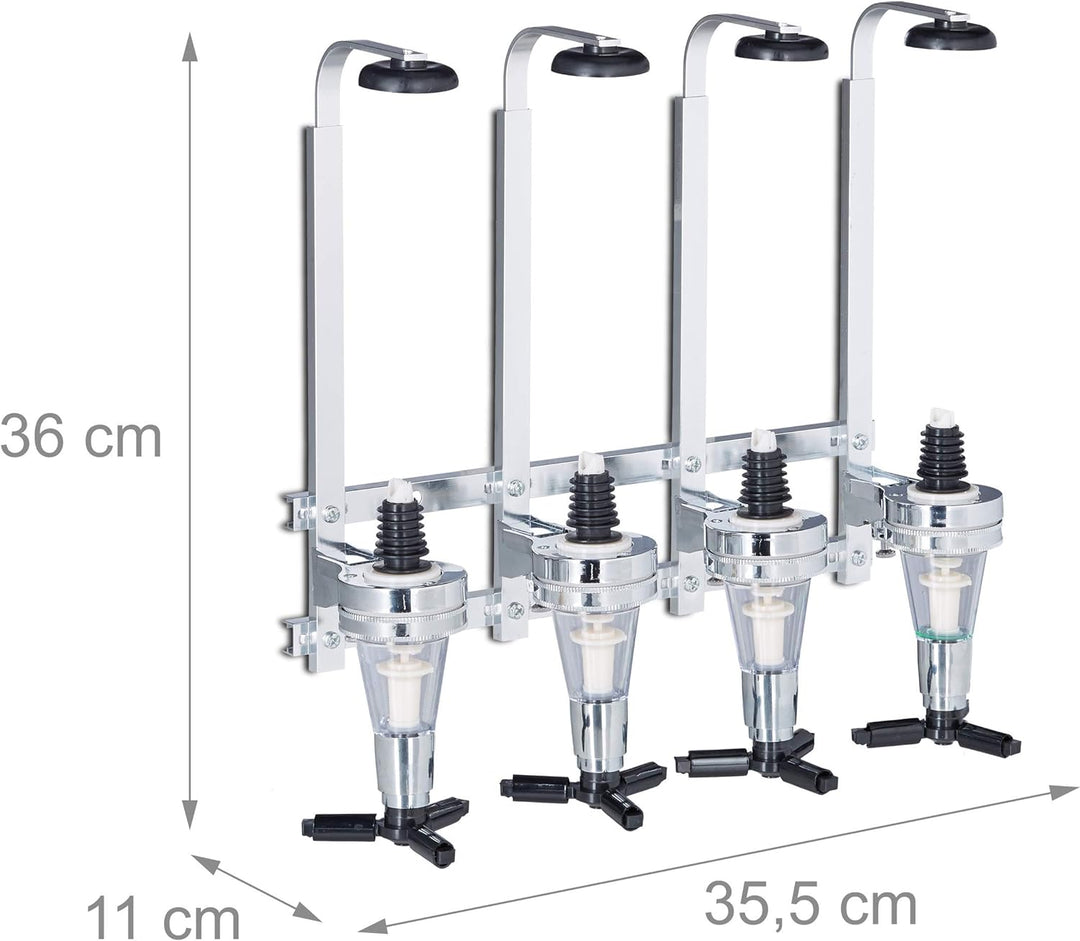 - Wandflaschenhalter: H x B x T: 36 x 35,5 x 11 cm - Material: Aluminium, Kunststoff, Gummi - Wiegt komplett aufgebaut ca. 0,7 kg - Für Flaschen mit 0,7 Liter Füllmenge - Dosiermenge: ca. 3 cl