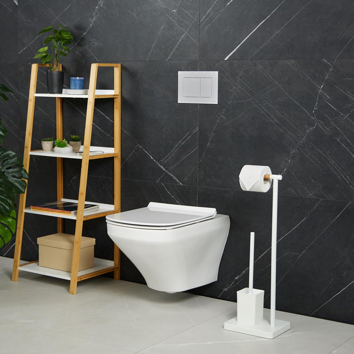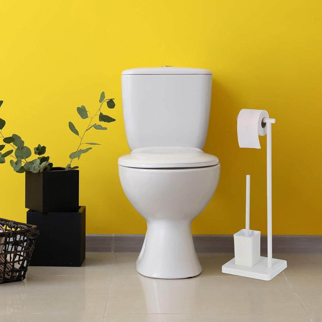- 2 in 1: Weisse WC-Garnitur für das Badezimmer - Kombination aus Toilettenpapierhalter und WC-Bürste