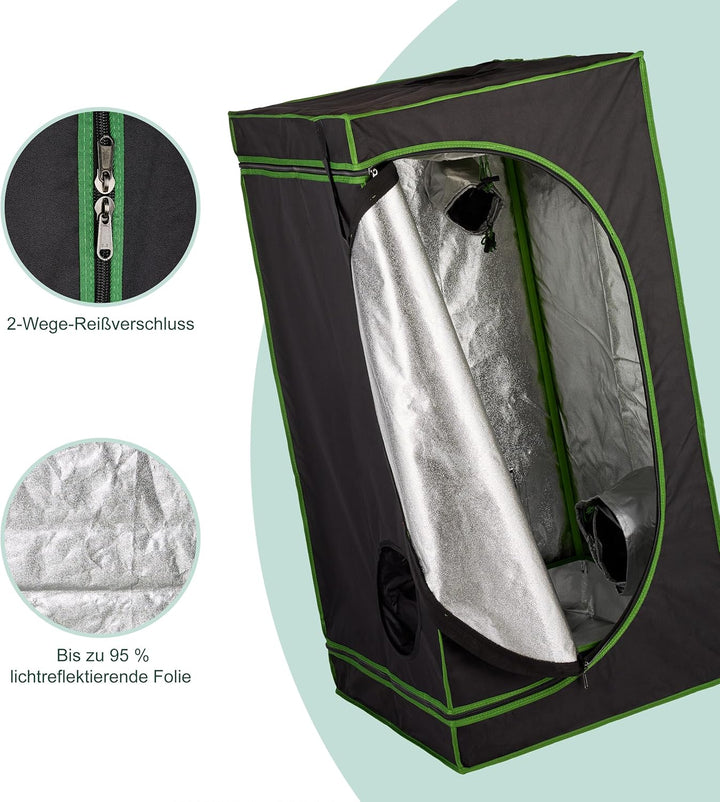 - Extras: Pflanzenzelt zugänglich durch 2-Wege-Zipper - 4 Zugänge mit Zugbändern für Belüftung & Kabel