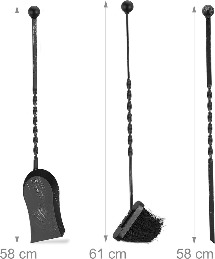 - Details: Länge des Schürhakens und der Schaufel: ca. 58 cm - Länge des Besens: ca. 61 cm - Borstenlänge: ca. 8 cm