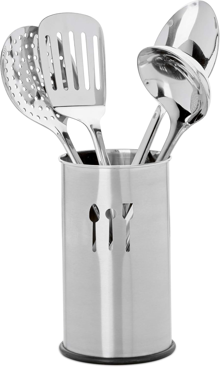 - 5-teiliges Set: Küchenhelferset bestehend aus Pfannenwender bzw. Bratenheber, Schöpfkelle, Suppenkelle, Servierlöffel und Besteckaufbewahrung