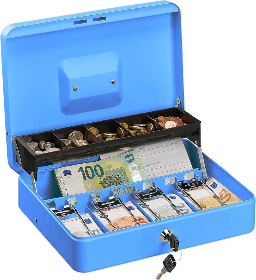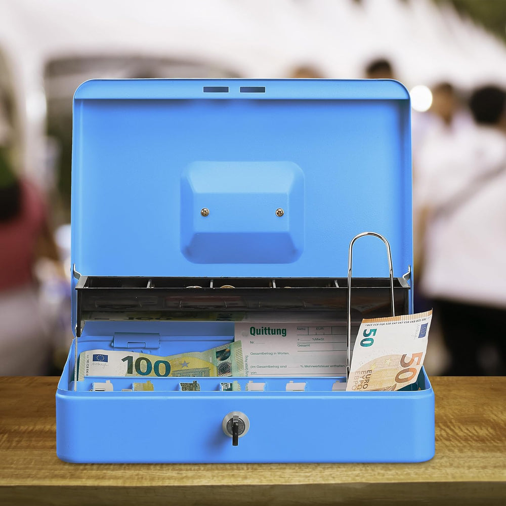 - Sicher: Abschliessbare Bargeldkasse in Blau mit Schloss und 2 Schlüsseln - Sichere Geldaufbewahrung