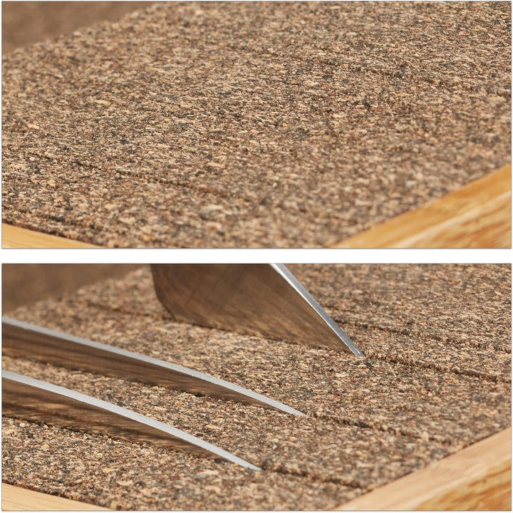 - Schont Klingen: Die elastischen Plättchen aus Kork sorgen dafür, dass die Klingen einander nicht berühren und zerkratzen - Auch der schonende Korkboden trägt zur adäquaten Lagerung Ihrer Messer bei