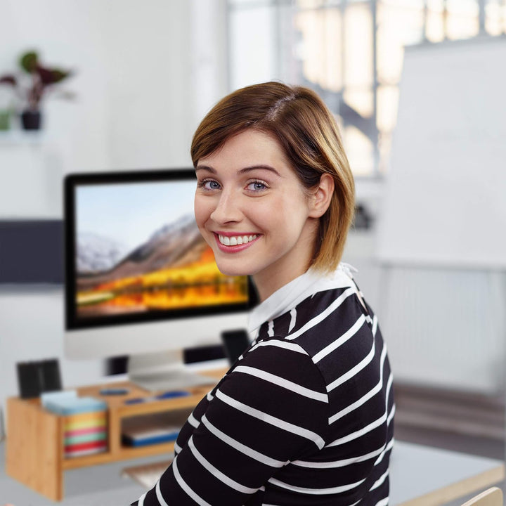 • Ergonomisch: Monitorerhöhung für aufrechte Sitzposition und weniger Nackenschmerzen beim Arbeiten