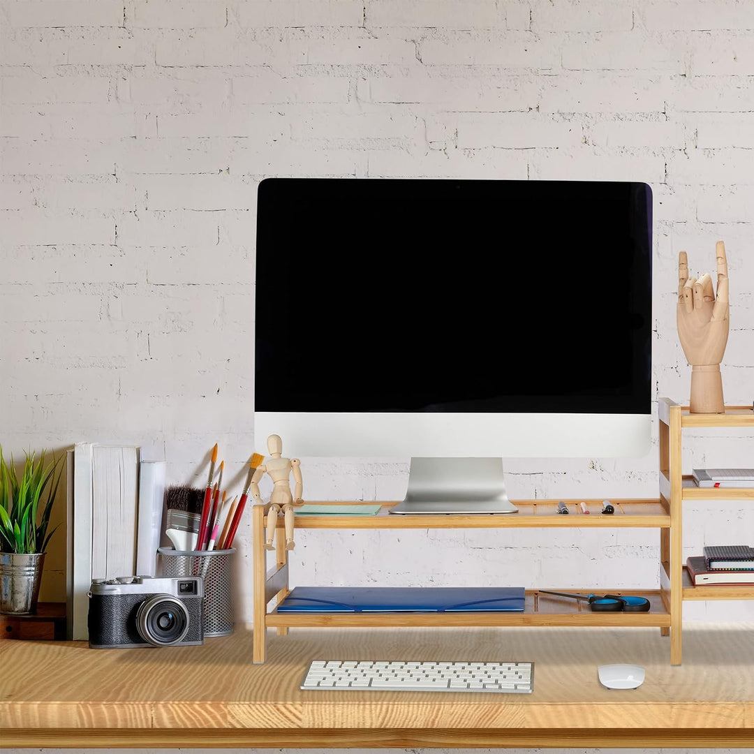 Relaxdays Monitorständer Bambus, 5 Ablagen, Bildschirmerhöhung Schreibtisch, HBT: 33x80x30 cm, Monit