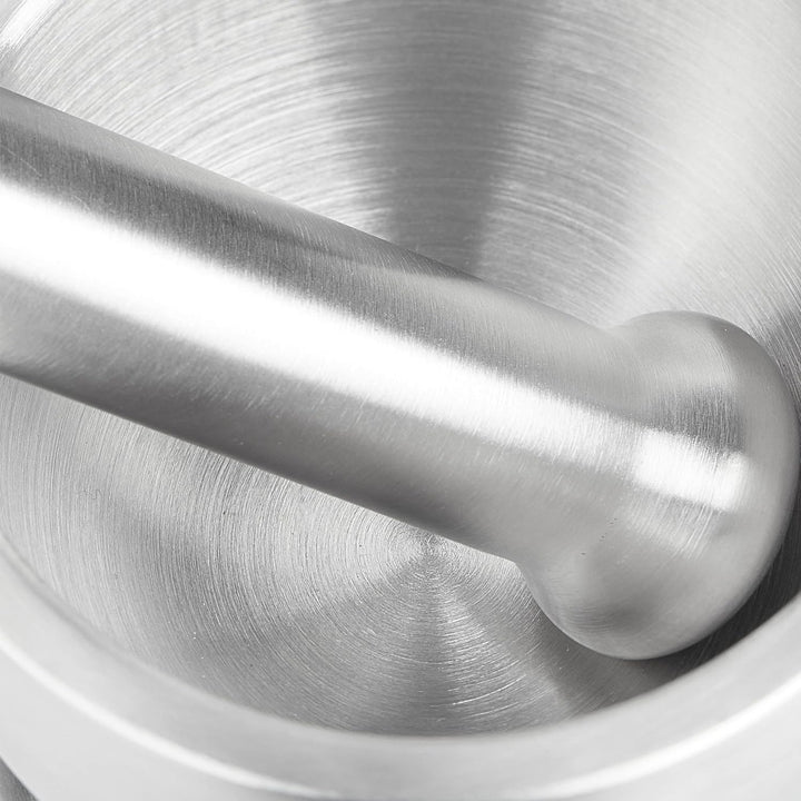 • Basics: Runder Mörser und Stössel sind aus robustem, mattem Edelstahl - Schale H x D: ca. 9 x 10 cm