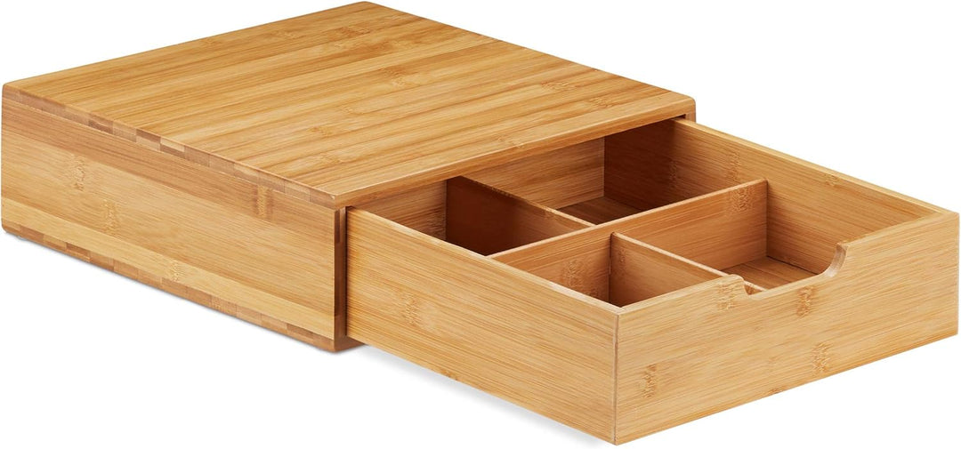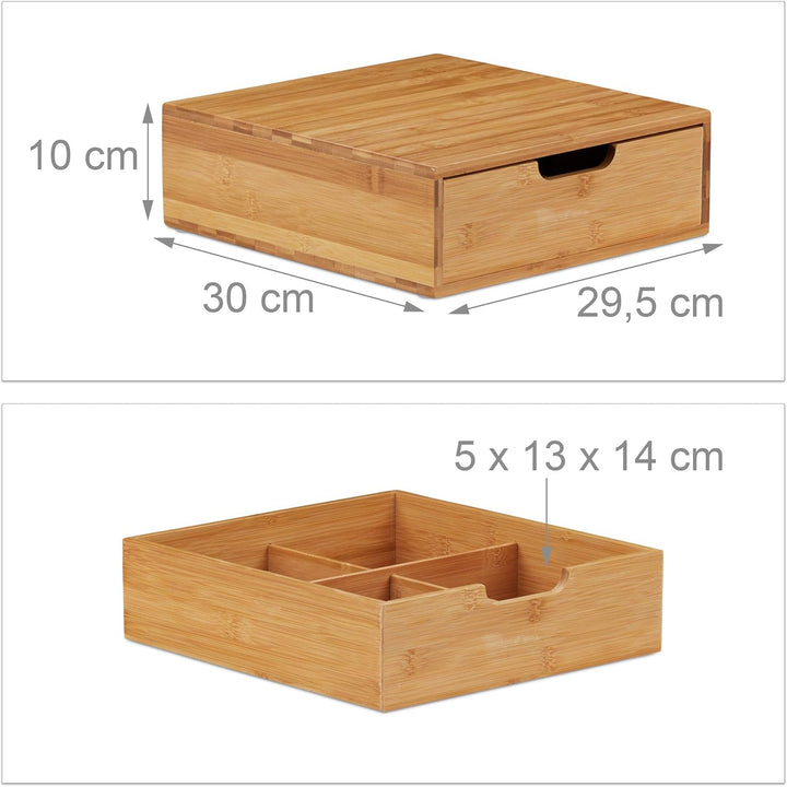- Geschlossen: Die Schubladenbox entzieht Kleinteile neugierigen Blicken - Bambusbox mit Einschub