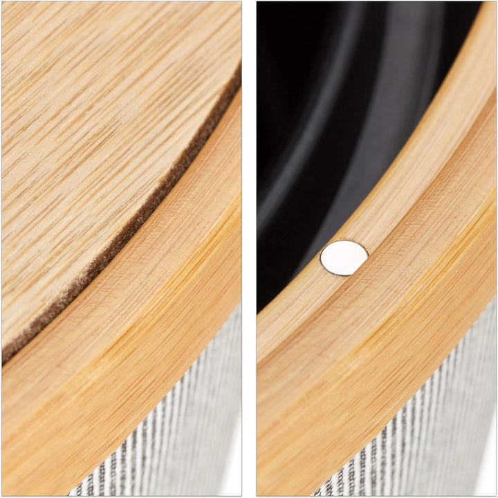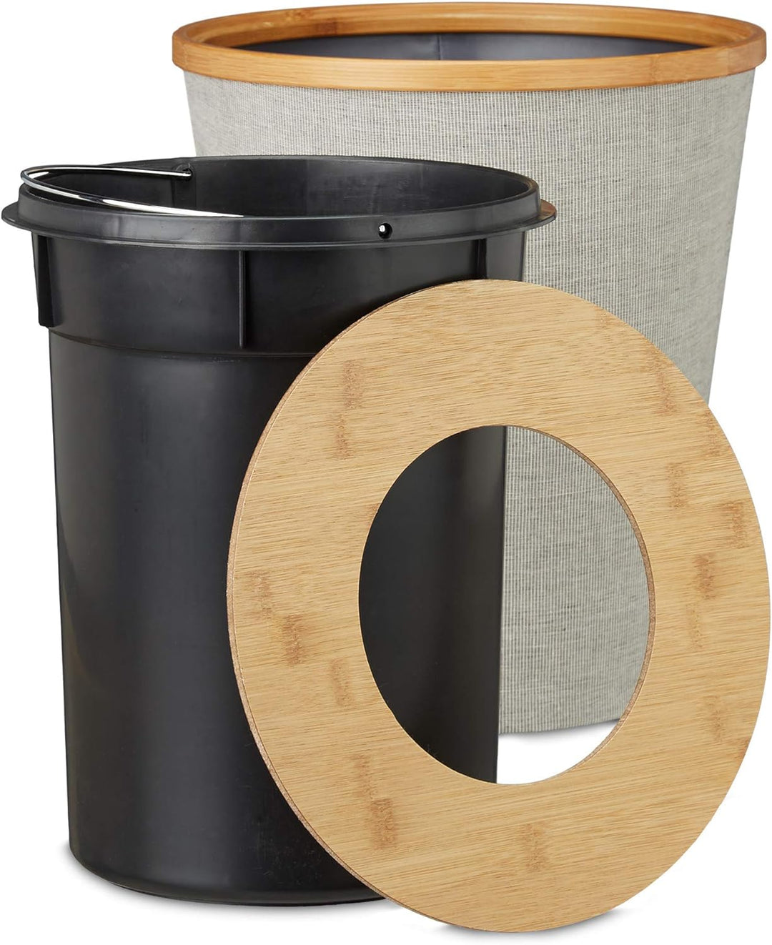 - Natürlich schön: Der obere Rand und der kreisrunde Deckel sind aus Bambusholz gefertigt - Die naturbelassene Maserung verwöhnt das Auge - Das feuchtigkeitsresistente Naturholz überzeugt auch im Bad