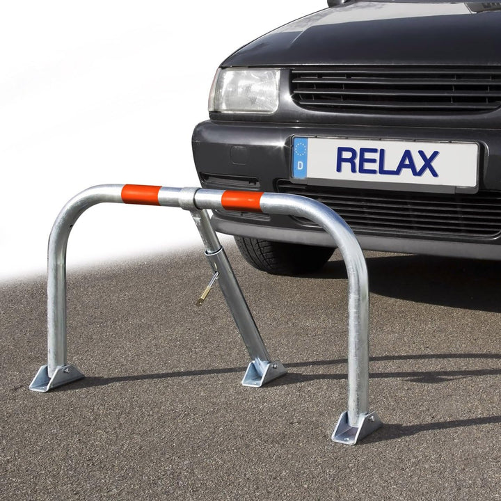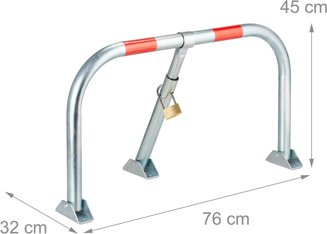 Relaxdays Parkplatzsperre klappbar, Parkbügel mit Vorhängeschloss, Stahl, HBT: 45x76x32cm, Sperrbüge