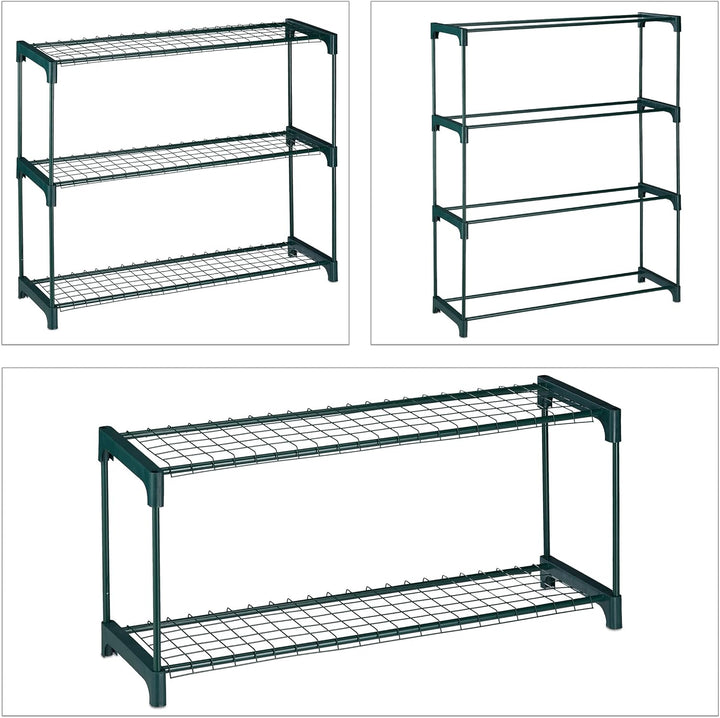 - Design: Schlichtes Blumenregal aus Kunststoff und Gitterablagen aus Metall fügt sich überall gut ein
