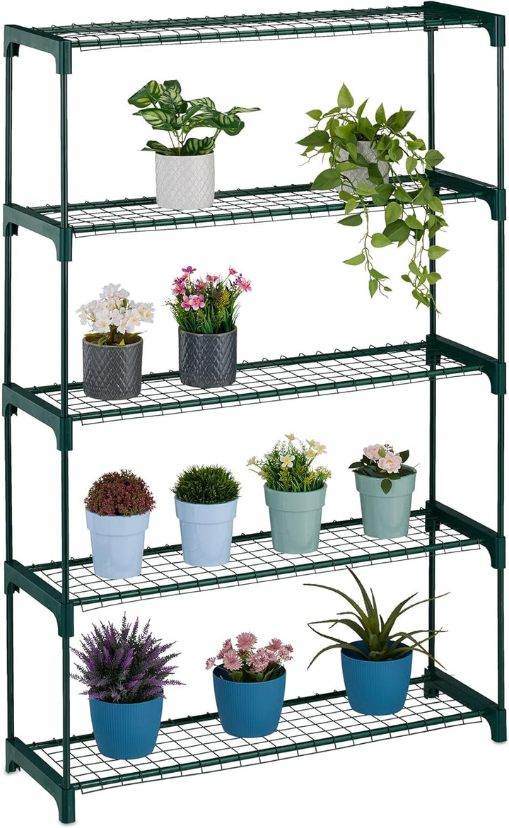 • Mehrstöckig: Grünes Pflanzenregal mit 5 Stufen für Pflanzen und Deko - Belastbare Gitter-Ebenen