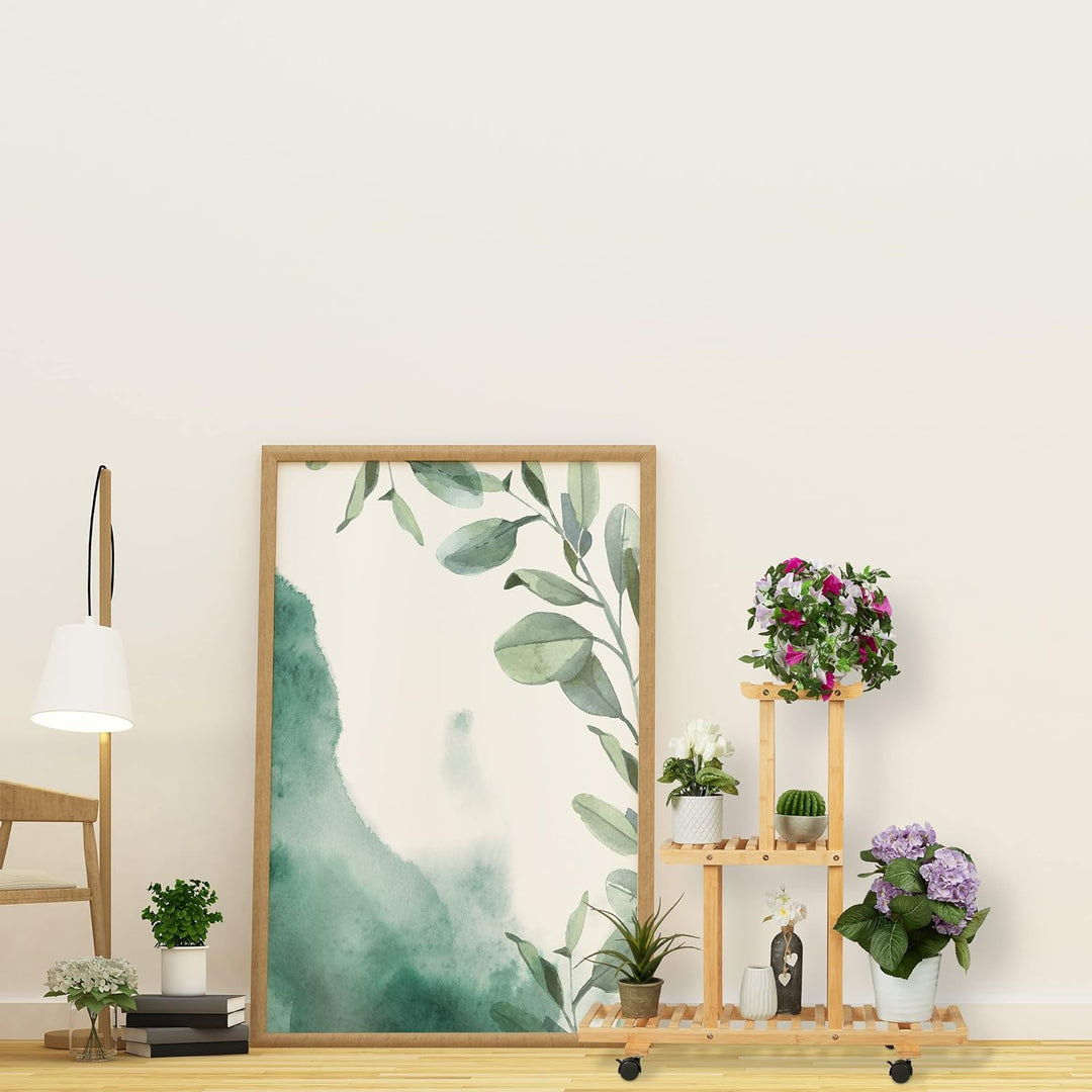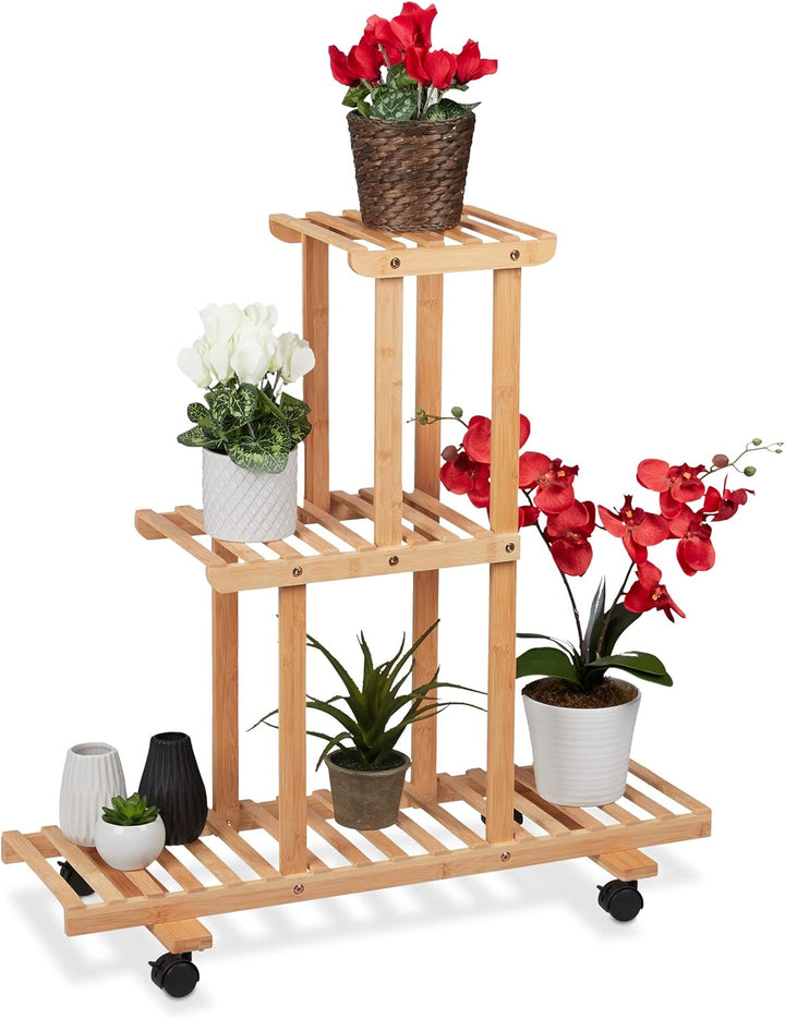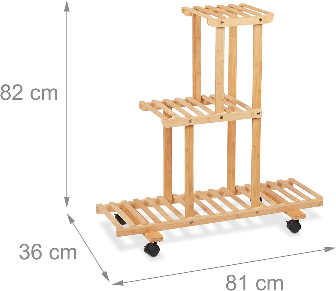- Design: Natürliche Pflanzentreppe aus Bambus - Robustes Blumengestell mit 3 geräumigen Ablagen