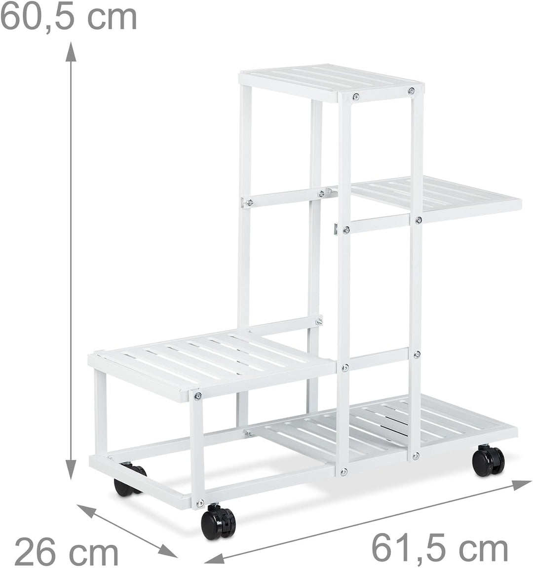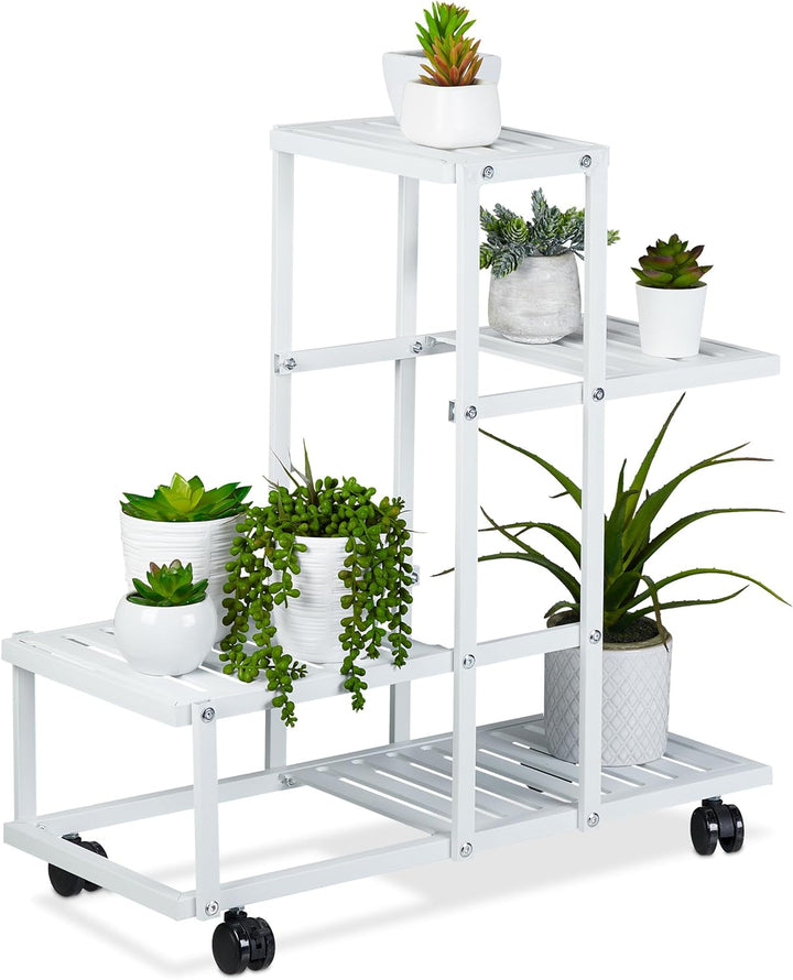 Relaxdays Pflanzenständer, 4 Ablagen, Pflanzentreppe für Blumen & Kräuter, Metall Blumenständer mit