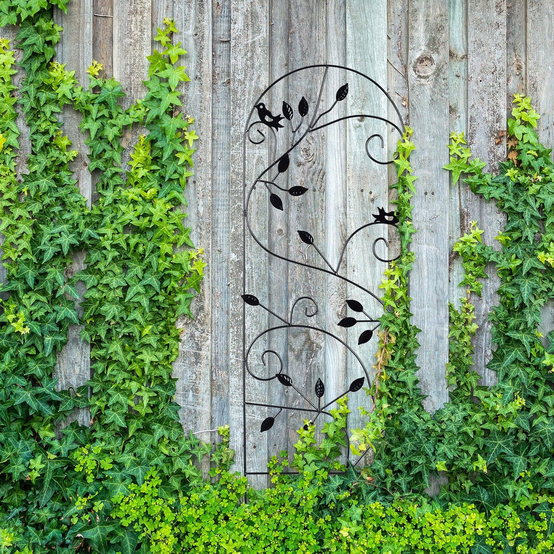 - Design: Gartenspalier mit stilvoll geschwungenem Rankenmuster und kleinen Vögeln - In Schwarz