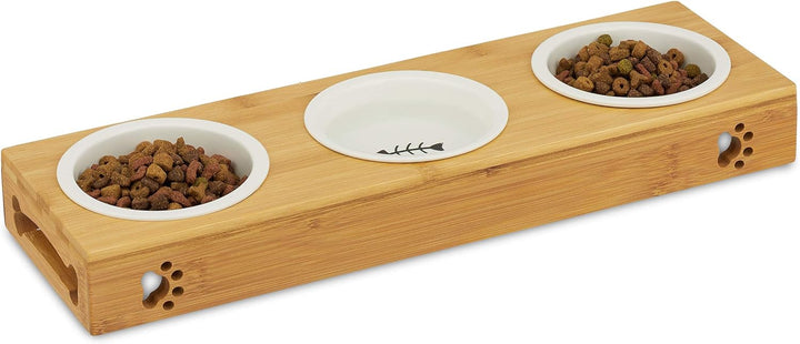 - 3er Set: Futternapfständer HBT ca. 5, 5 x 44, 5 x 14 cm - 3 Keramik Schalen fassen ca. je 180 ml