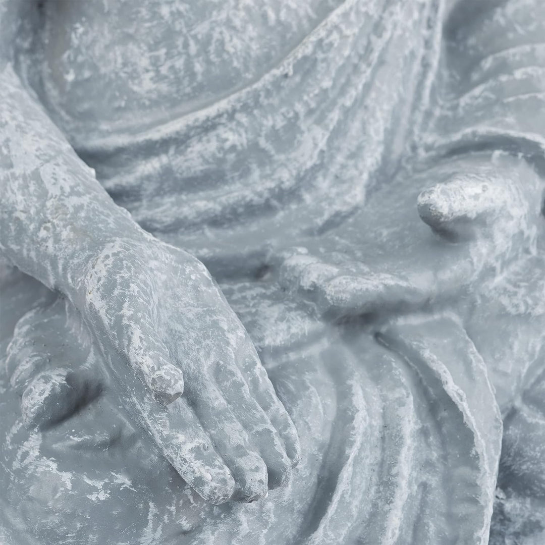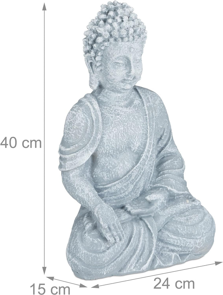 - Feng Shui Deko: Sitzende Buddha Figur in Hellgrau - Sorgt innen und aussen für asiatisches Flair