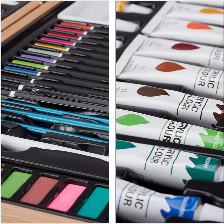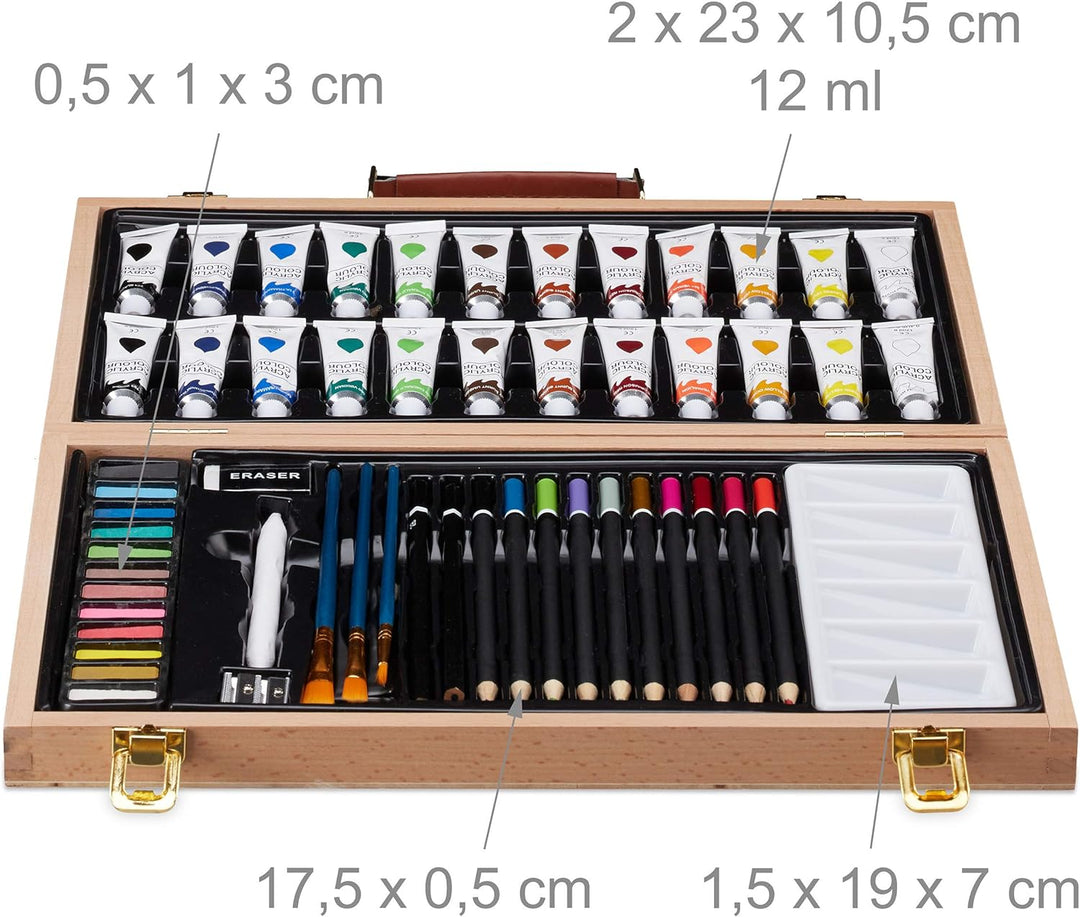 - Set: 56-teiliger Malkoffer aus Holz für Erwachsene – Eignet sich ideal für Anfänger und Hobbyzeichner