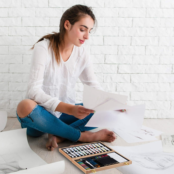 - Set: 56-teiliger Malkoffer aus Holz für Erwachsene – Eignet sich ideal für Anfänger und Hobbyzeichner