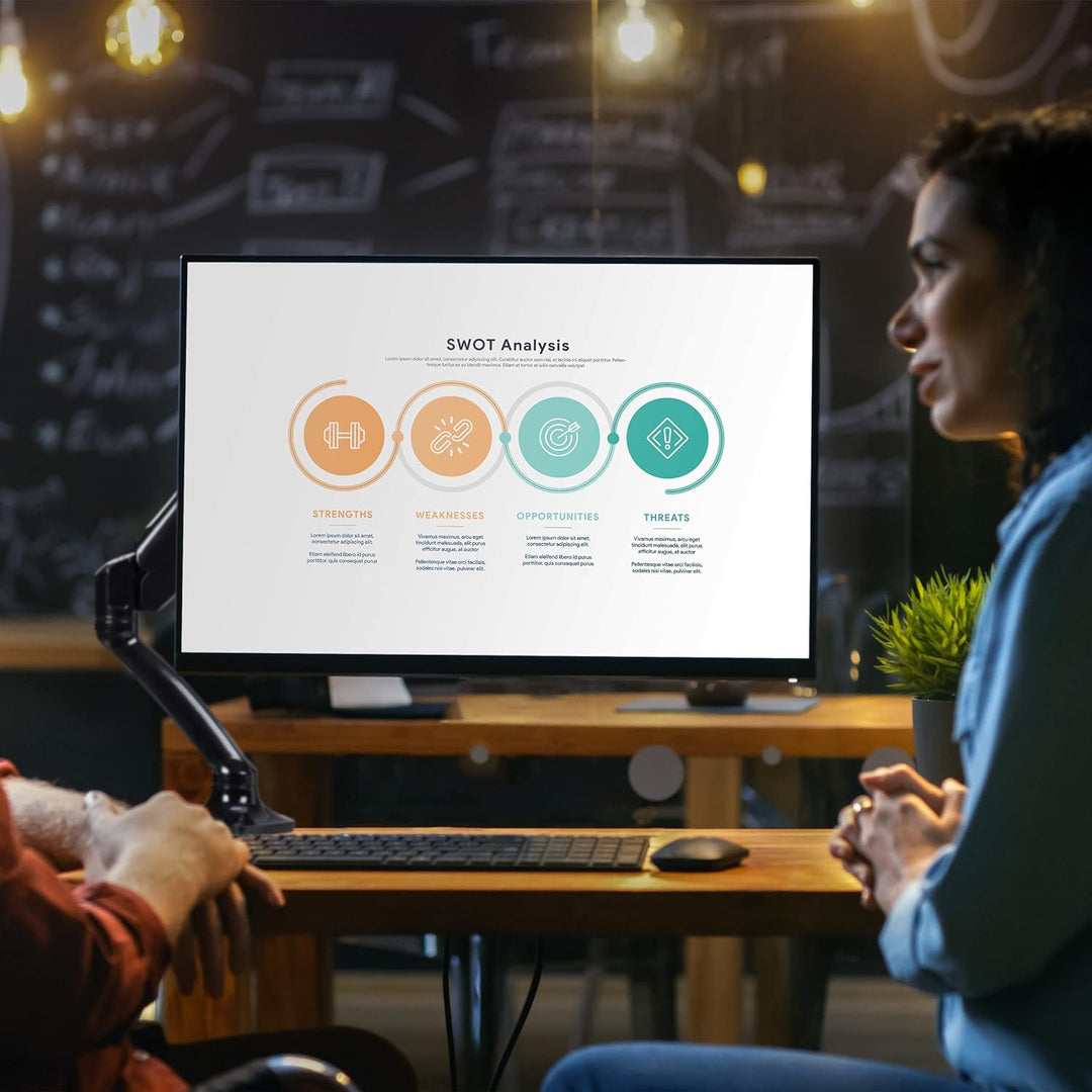 - Praktisch: Bildschirmhalter entweder an den Schreibtisch anklemmen oder über ein Bohrloch befestigen
