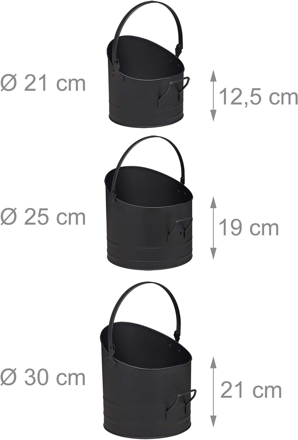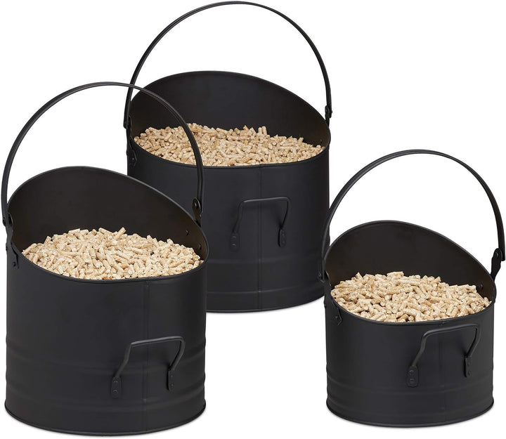 Relaxdays Pelleteimer 3er Set, ∅ je 21, 25 & 30 cm, Griff & klappbarer Henkel, Metall Kohleeimer, Ka